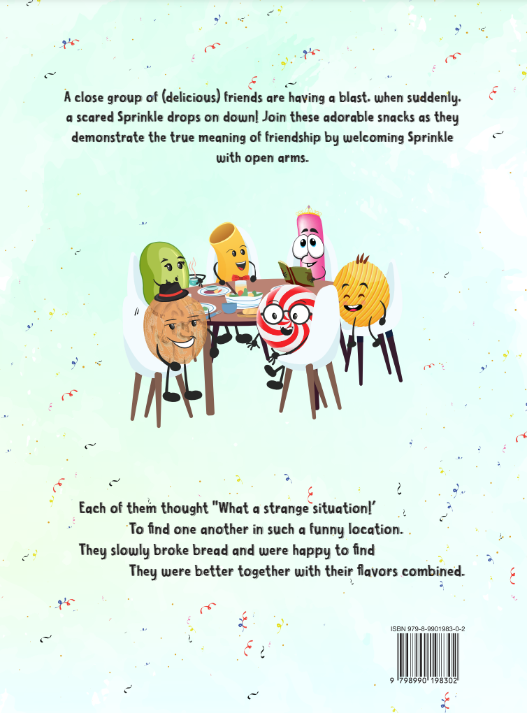 A close group of (delicious) friends are having a blast, when suddenly, a scared Sprinkle drops on down! Join these adorable snacks as they demonstrate the true meaning of friendship by welcoming Sprinkle with open arms.